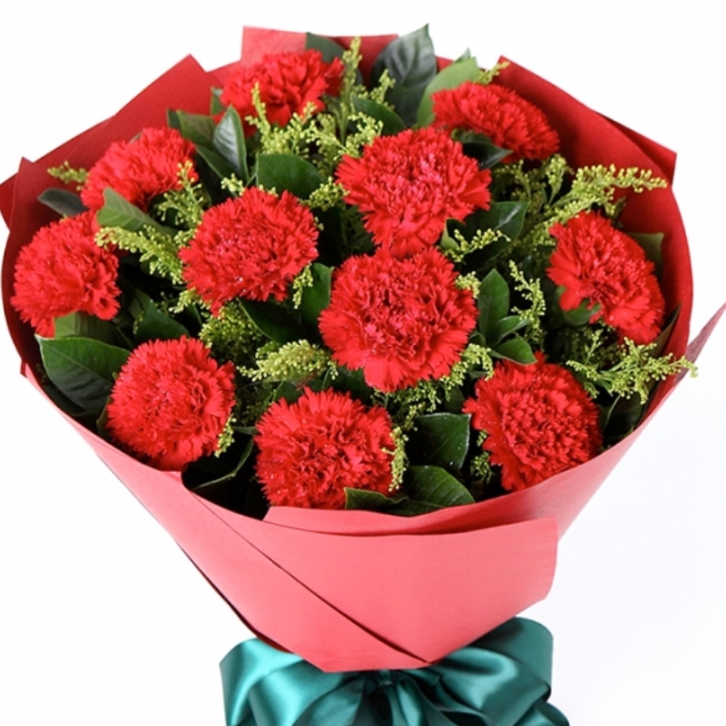 Букет из 11 гвоздик с зеленью
