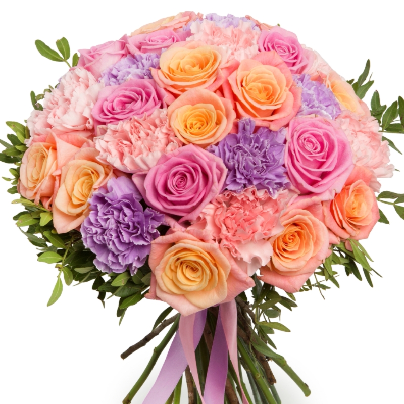 Букет из роз и гвоздик "Улыбка радуги"