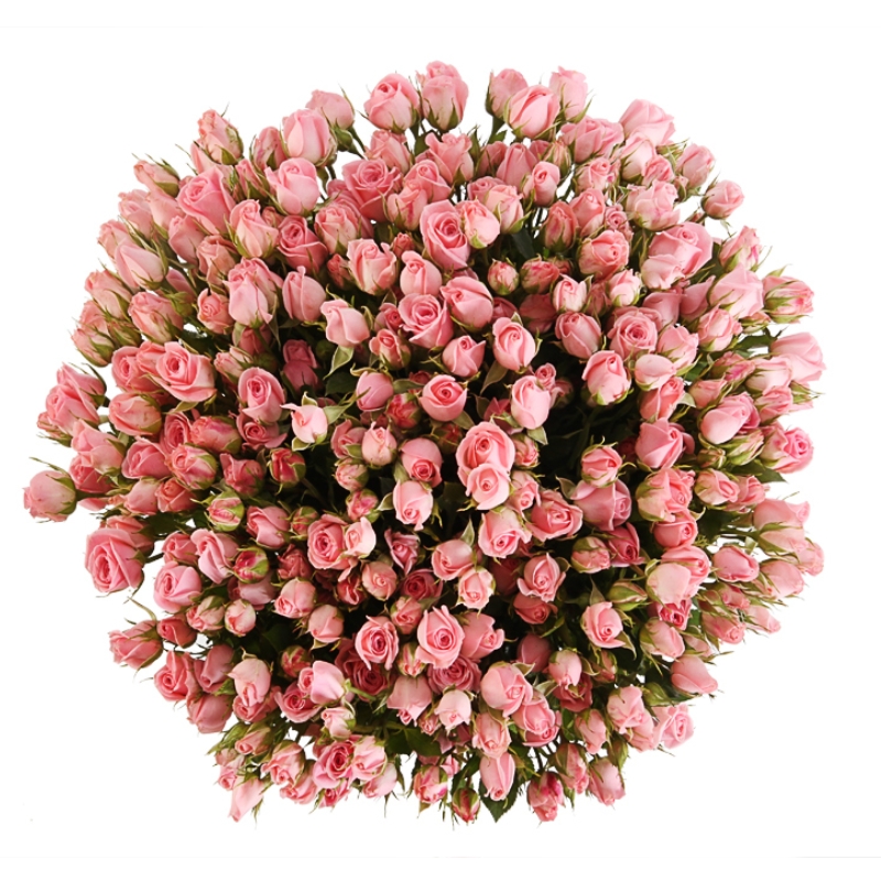 Букет состоит из 21 ветка кустовой розовой розы, красивая упаковка.