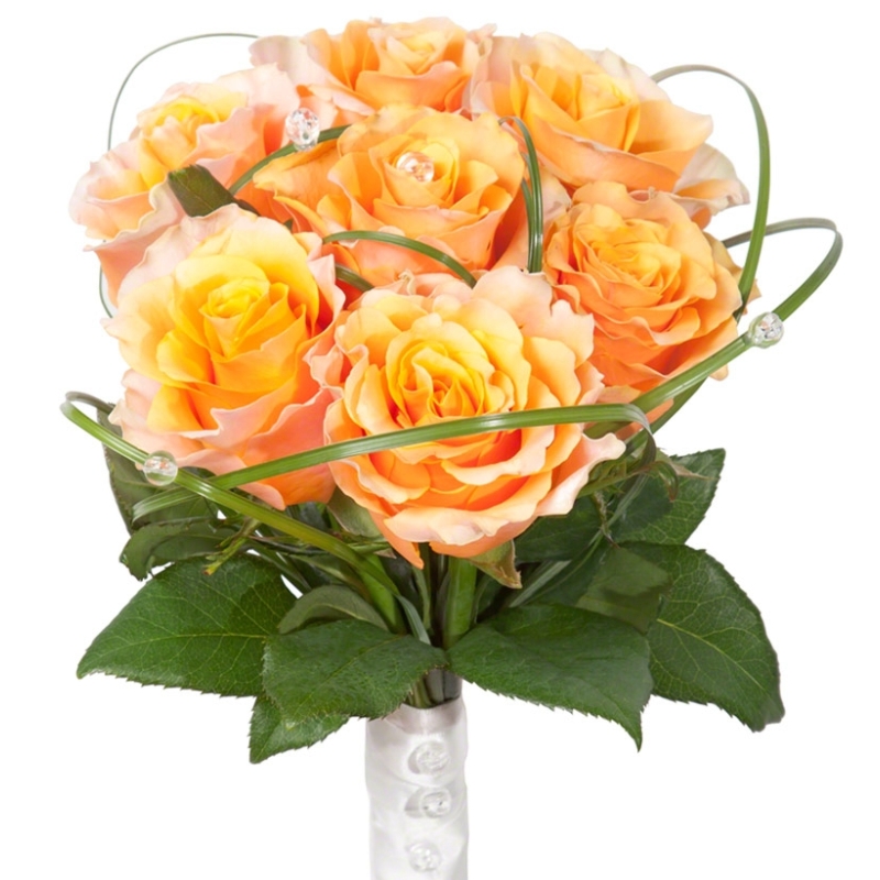 Букет состоит из 7 оранжевых роз, берграсс, атласная лента.