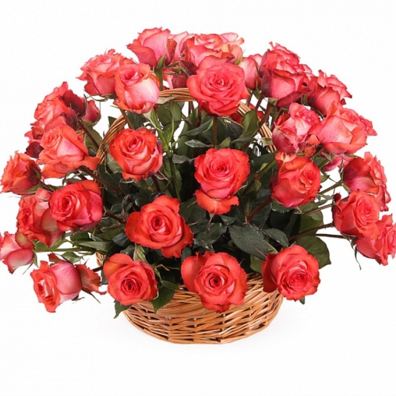 51 роза Игуана (Эквадор), корзина.