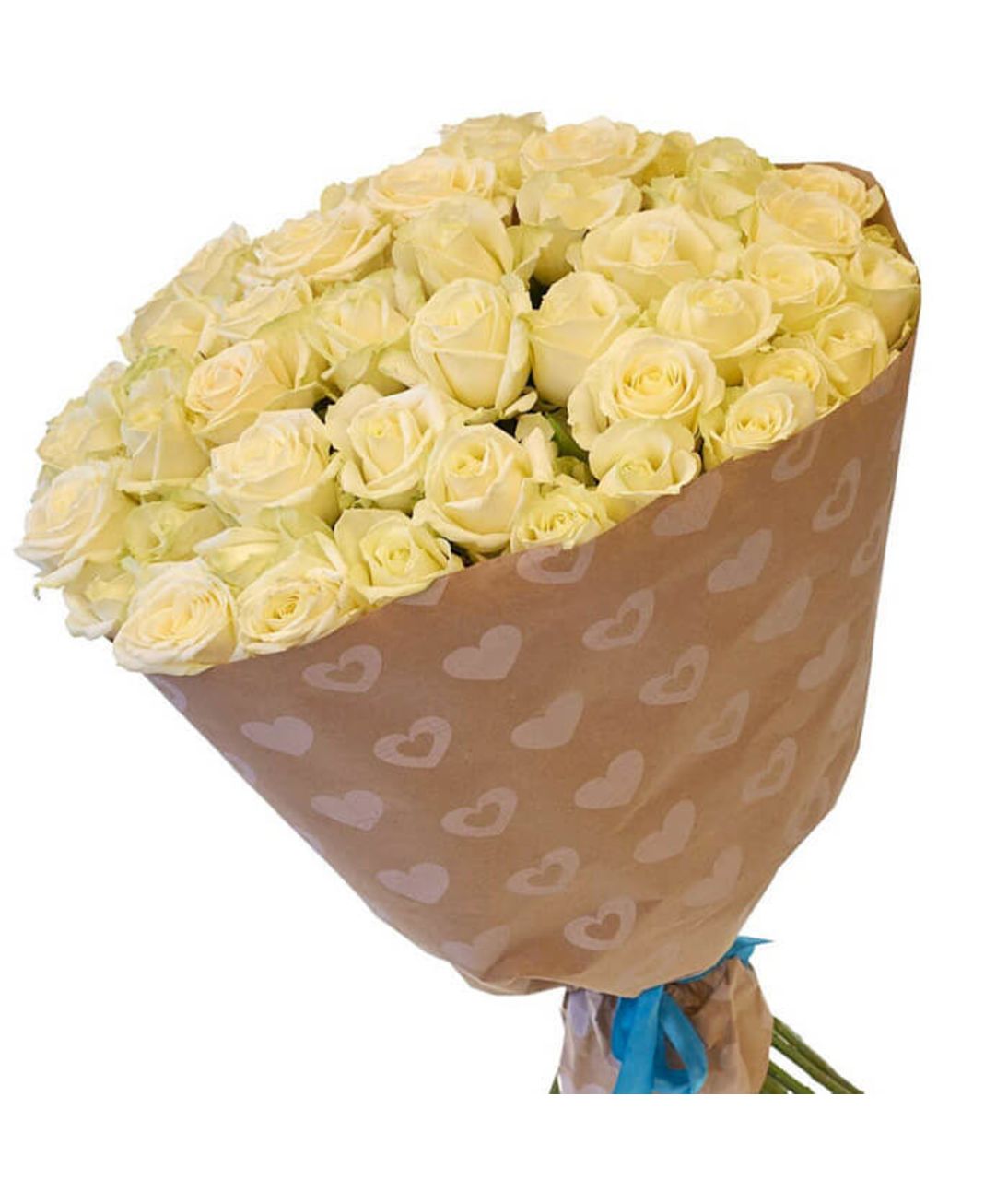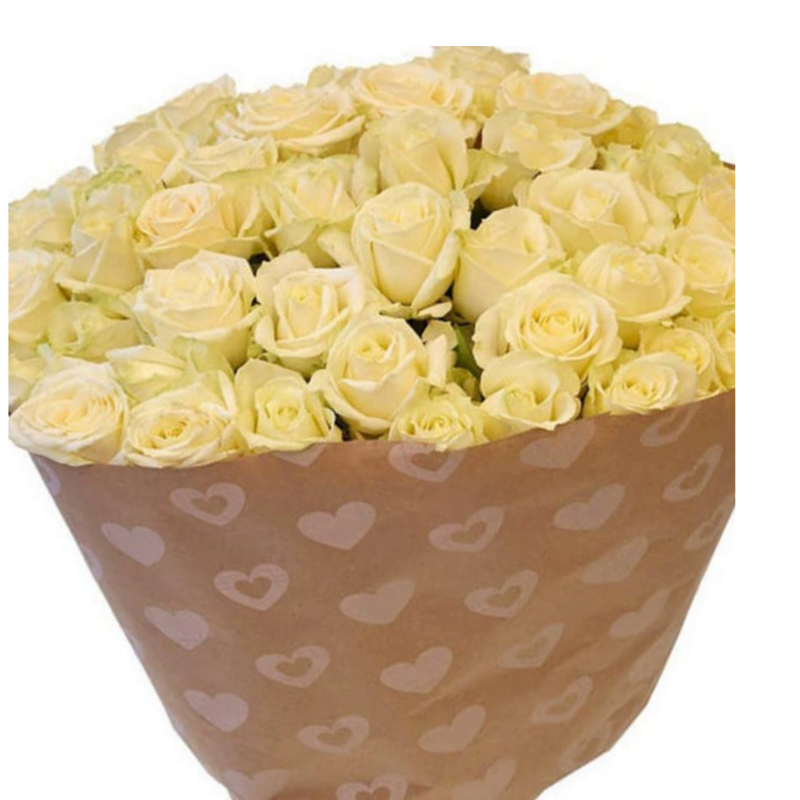 Букет состоит из 51 кремовая роза, крафт, атласная лента.