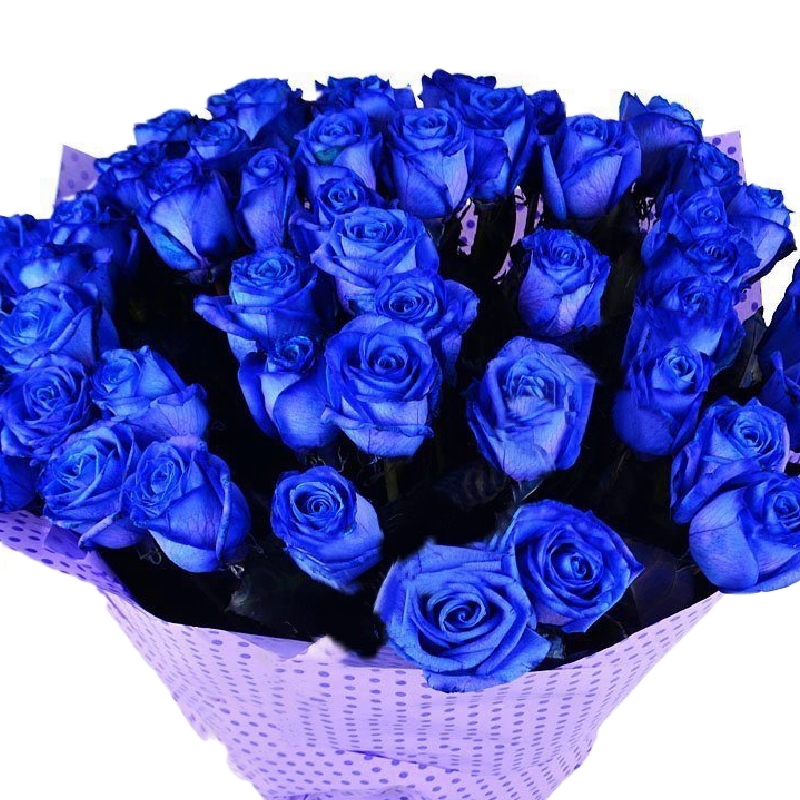 Букет состоит из 51 синяя роза, красивая упаковка, атласная лента.