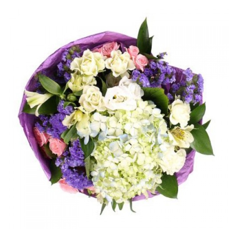 Альстромерия 4 шт., Гортензия 1 шт., Роза кустовая 4 шт., Статица 2 шт. |