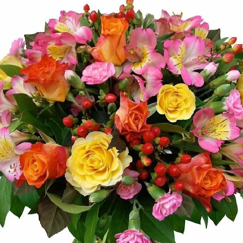 Альстромерия, Гвоздика, Гиперикум, Роза |