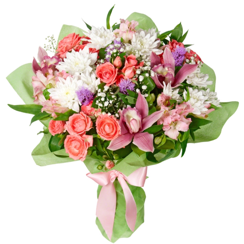 Альстромерия, Гипсофила, Орхидея, Роза кустовая, Хризантема |