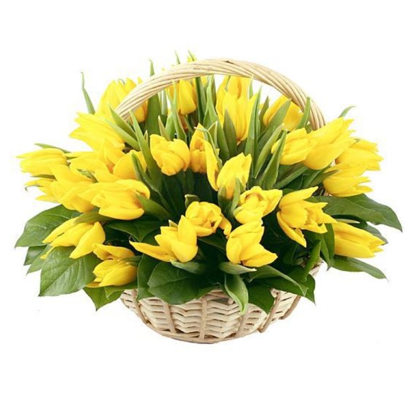 Желтые тюльпаны в корзине