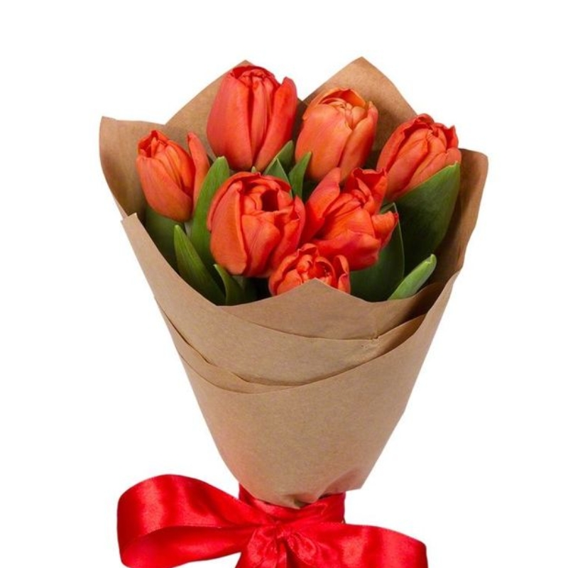 Букет из 7 красных тюльпанов в крафте
