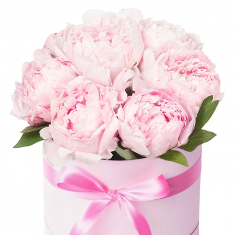 Розовые пионы в коробке