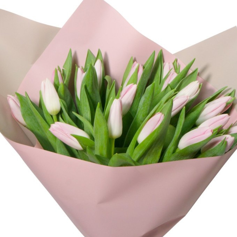 Букет состоит из 15 розовых тюльпанов, красивая упаковка, атласная лента.