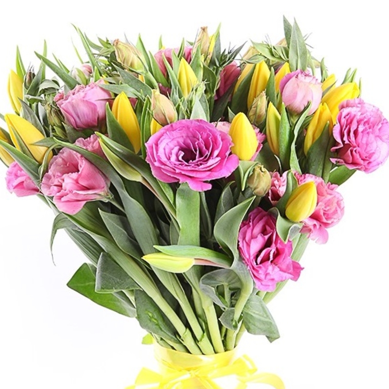 Букет из тюльпанов и эустомы