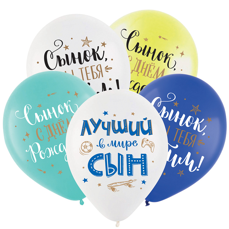 С ДР Сынок, Ассорти Пастель, Латексный шар, 1 шт