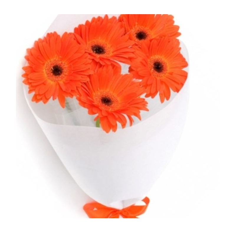 Букет состоит из 9 оранжевых гербер, красивая упаковка, атласная лента.