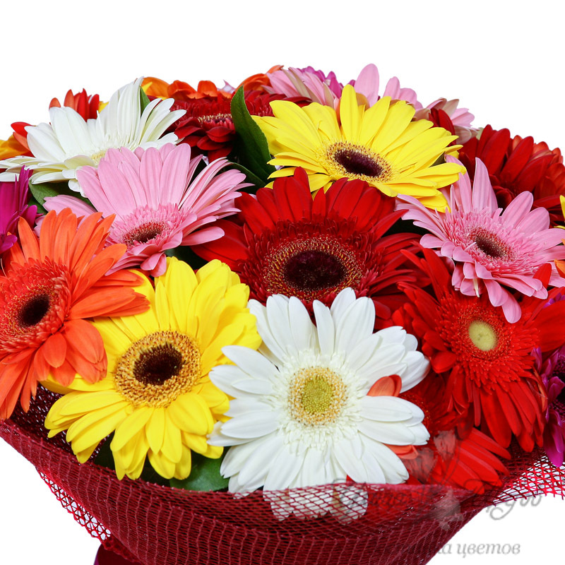 Букет состоит из MIX из 19 гербер, красивая упаковка, атласная лента.