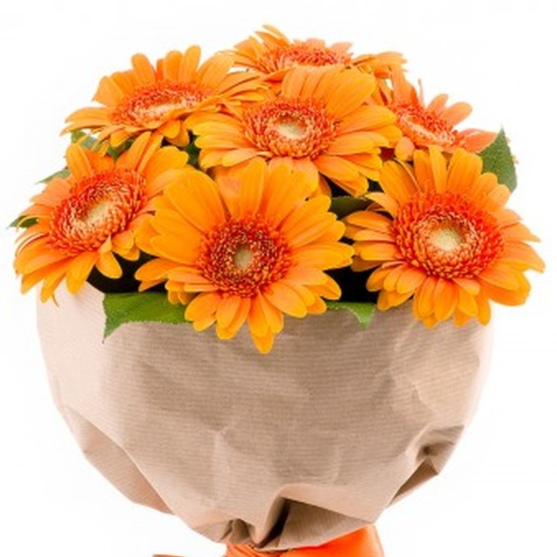 Букет из 7 оранжевых гербер в крафте