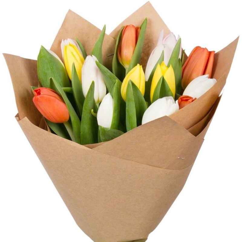 Букет MIX из 15 тюльпанов в крафте