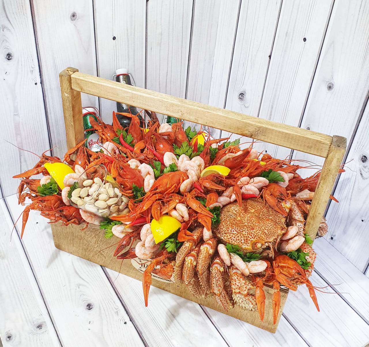 Букет 44. Ящик с раками и крабом. Подарок на юбилей мужчине
