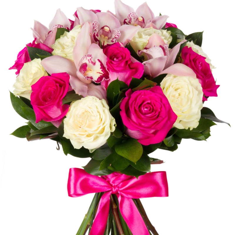 Букет из роз и орхидей "Скромное обаяние"