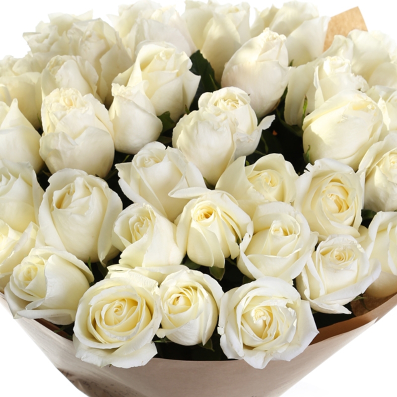 Букет из 31 белой розы в крафте