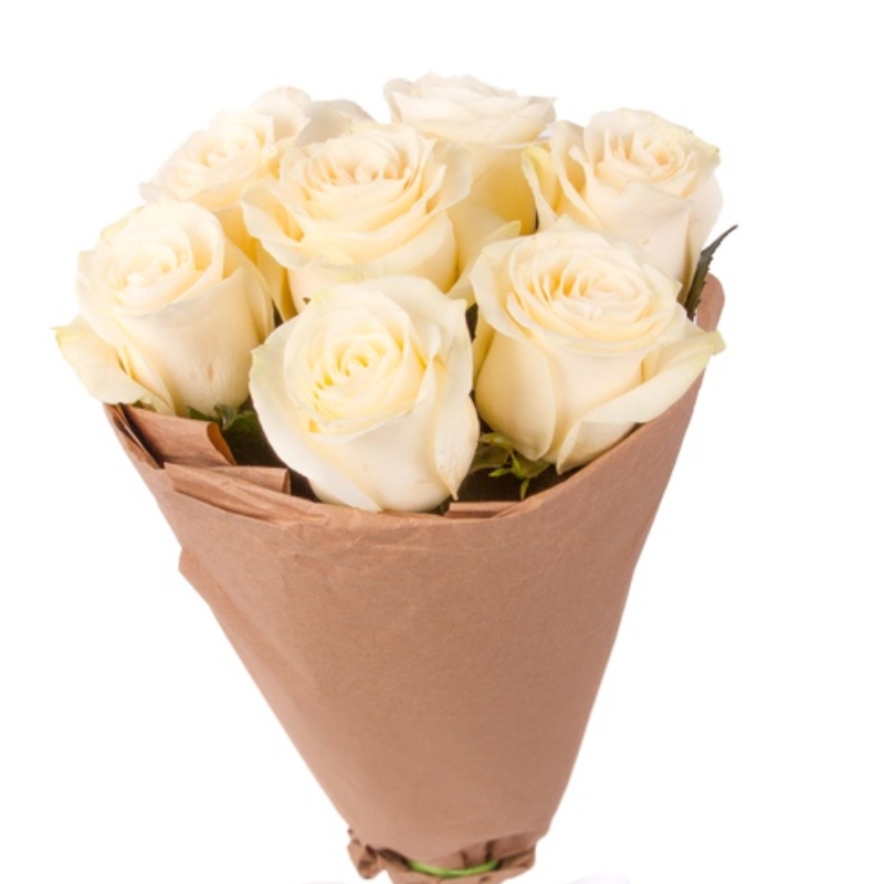 Букет из 7 белых роз в крафте
