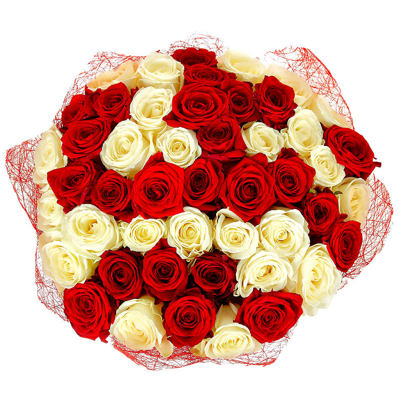Букет из 55 красных и белых роз