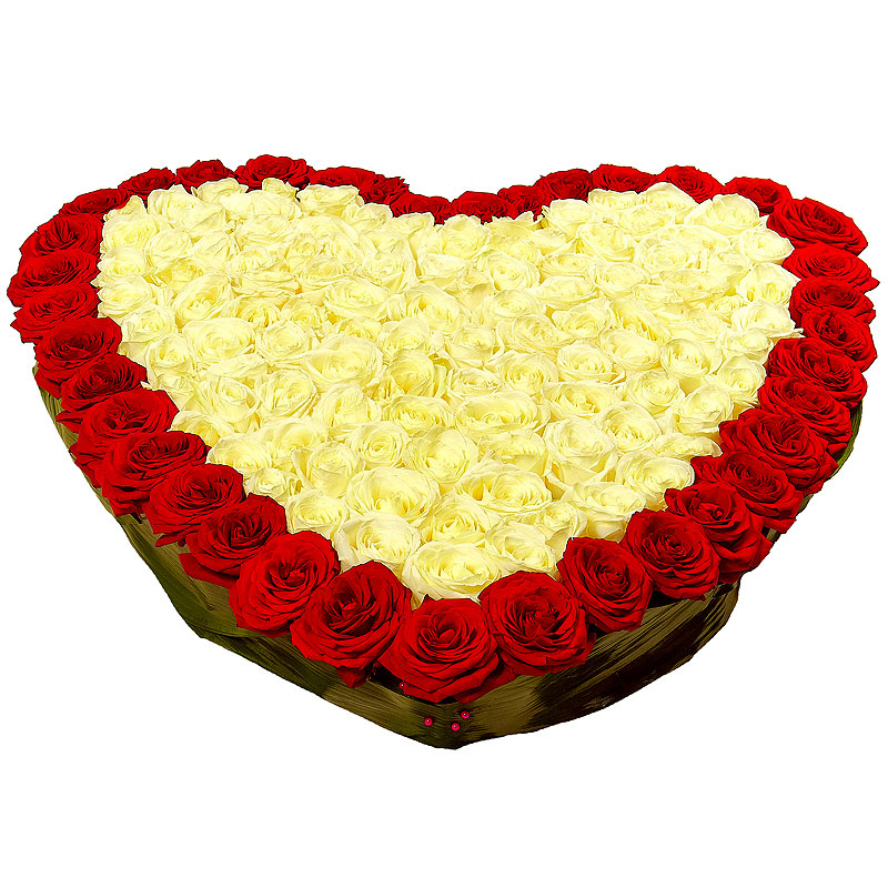 Сердце из 151 красной и белой розы