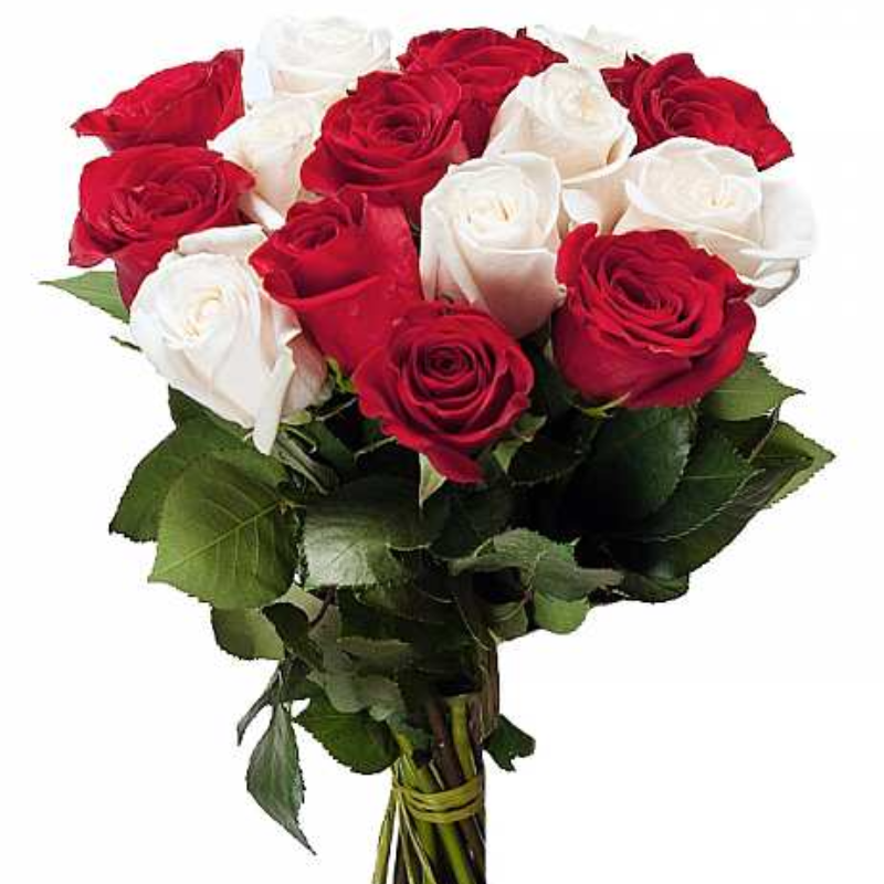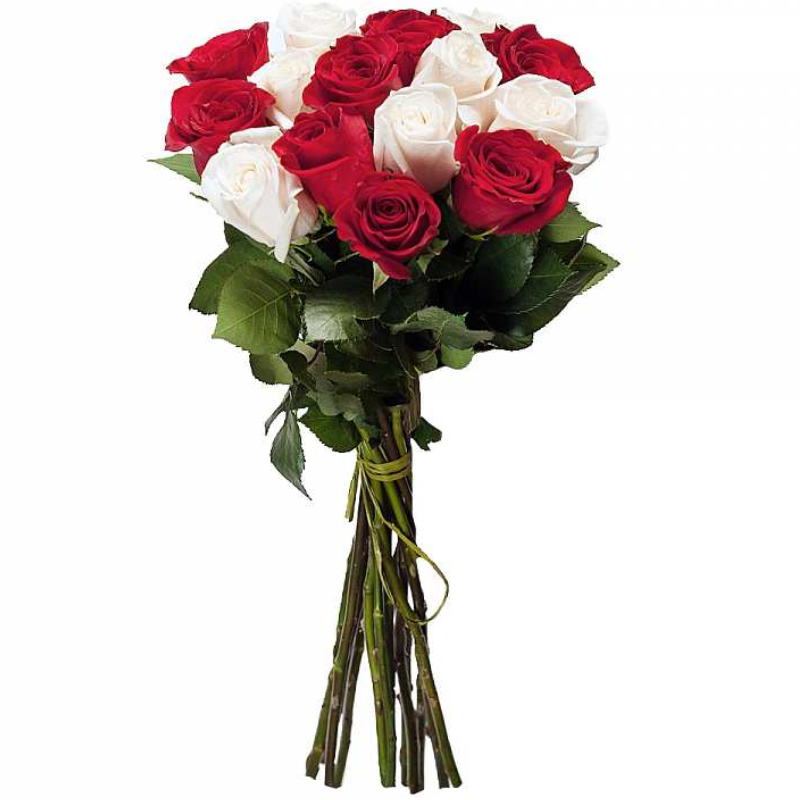 Букет из 19 красной и белой розы роз