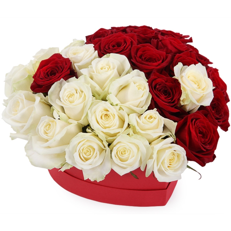 Композиция "Гармония сердца" из 31 красной и белой розы