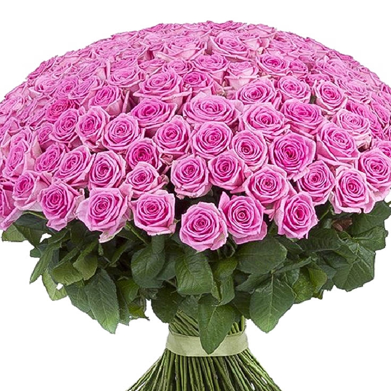 Букет состоит из 201 розовая роза, прозрачная упаковка, атласная лента.
