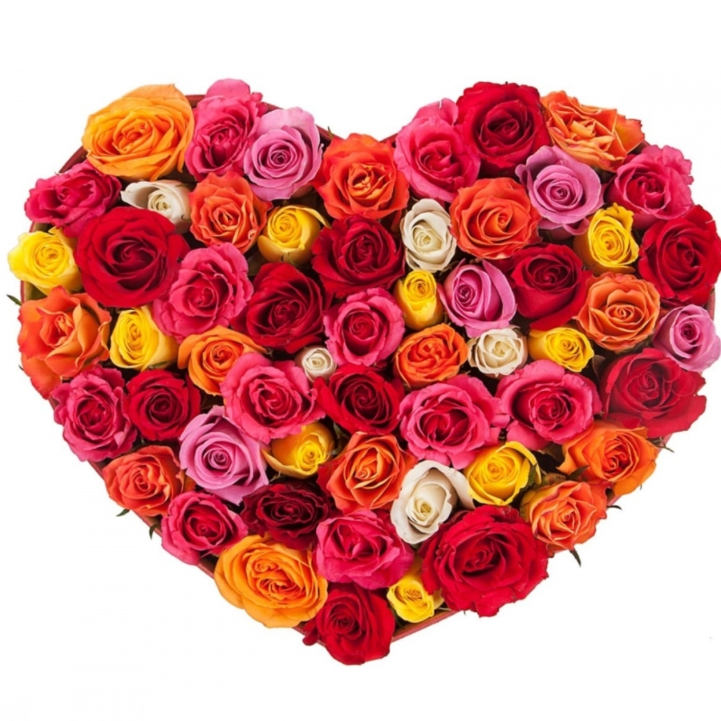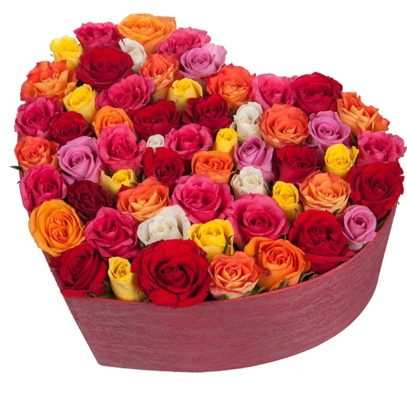 MIX из 51 розы, коробка в виде сердца.