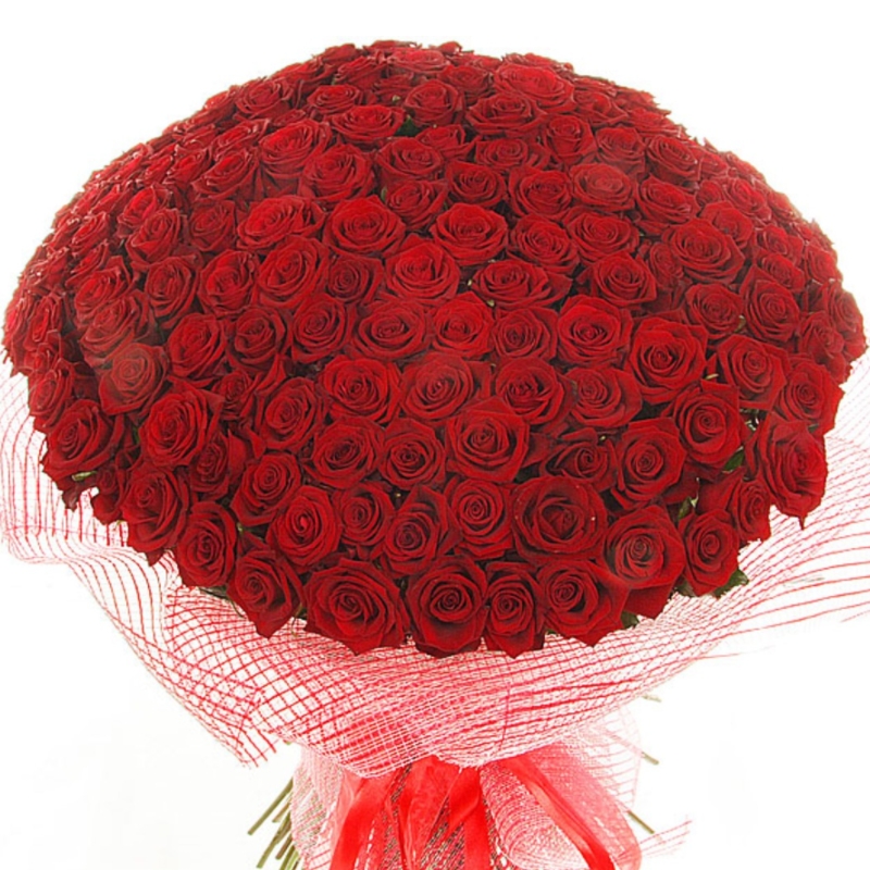 Букет состоит из 201 красная роза, красивая упаковка, атласная лента.