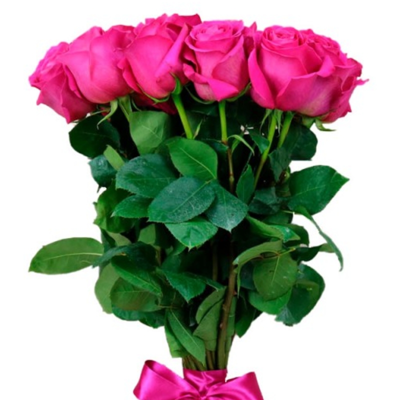 Букет состоит из 15 малиновых роз, прозрачная упаковка, атласная лента.