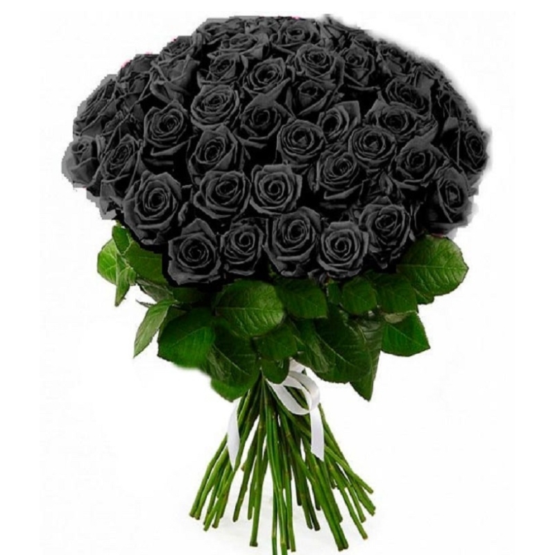 Букет состоит из 51 черная роза, прозрачная упаковка, атласная лента.