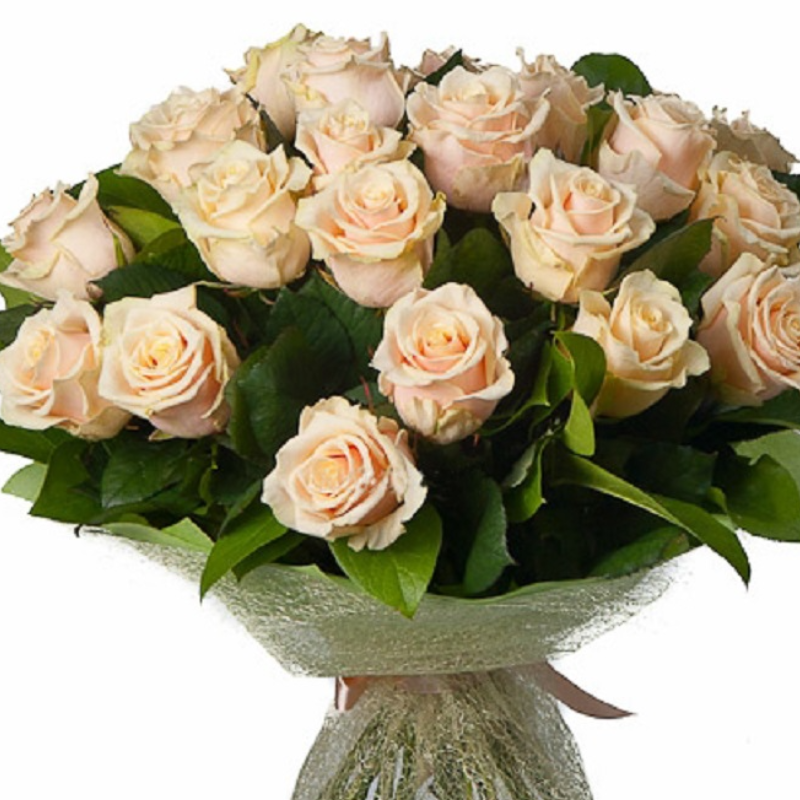 Букет состоит из 25 кремовых роз, красивая упаковка.