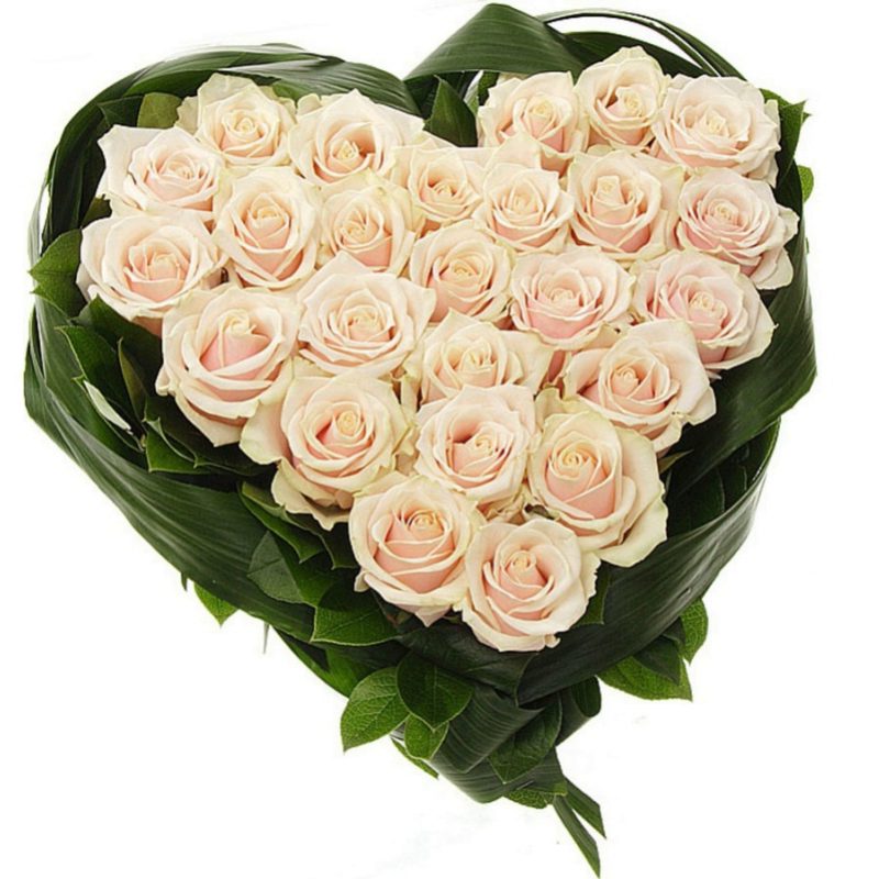 Сердце из 25 кремовых роз