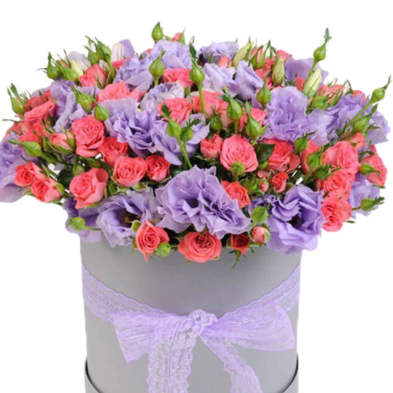 Букет из роз и эустомы в коробке