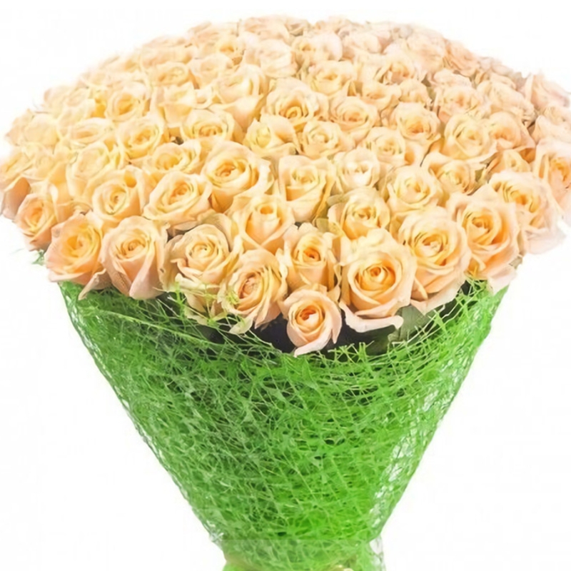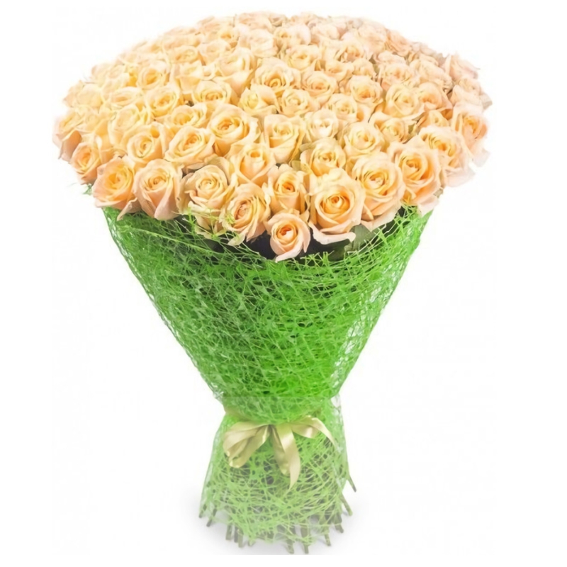 Букет состоит из 101 кремовая роза, красивая упаковка, атласная лента.