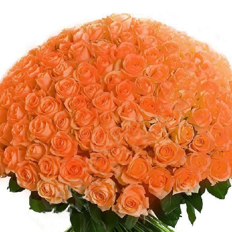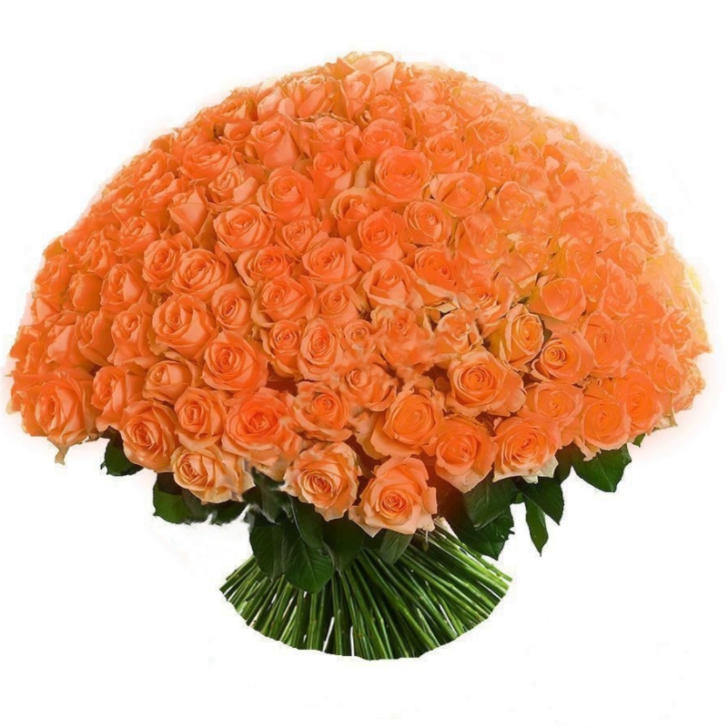Букет состоит из 201 персиковая роза, прозрачная упаковка, атласная лента.