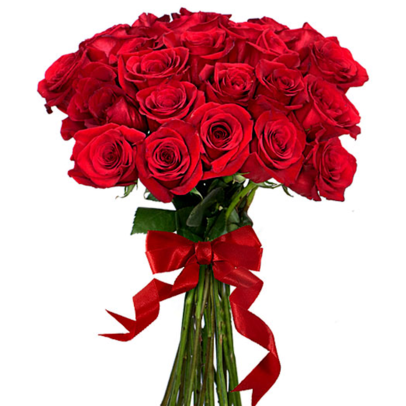 Букет состоит из 21 красная роза, прозрачная упаковка, атласная лента.