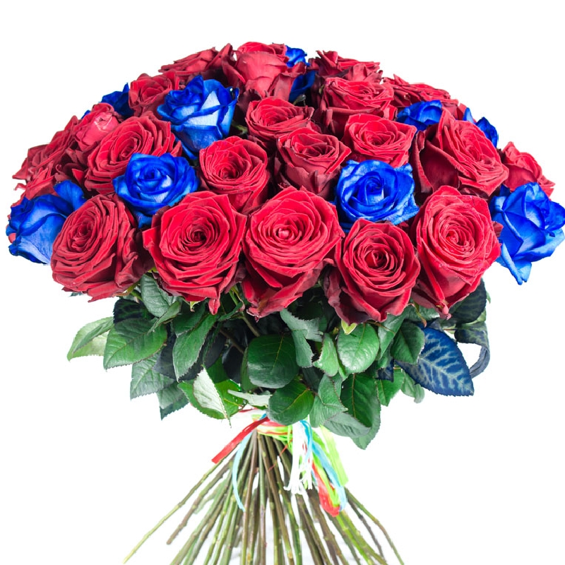Букет из 35 синих и красных роз
